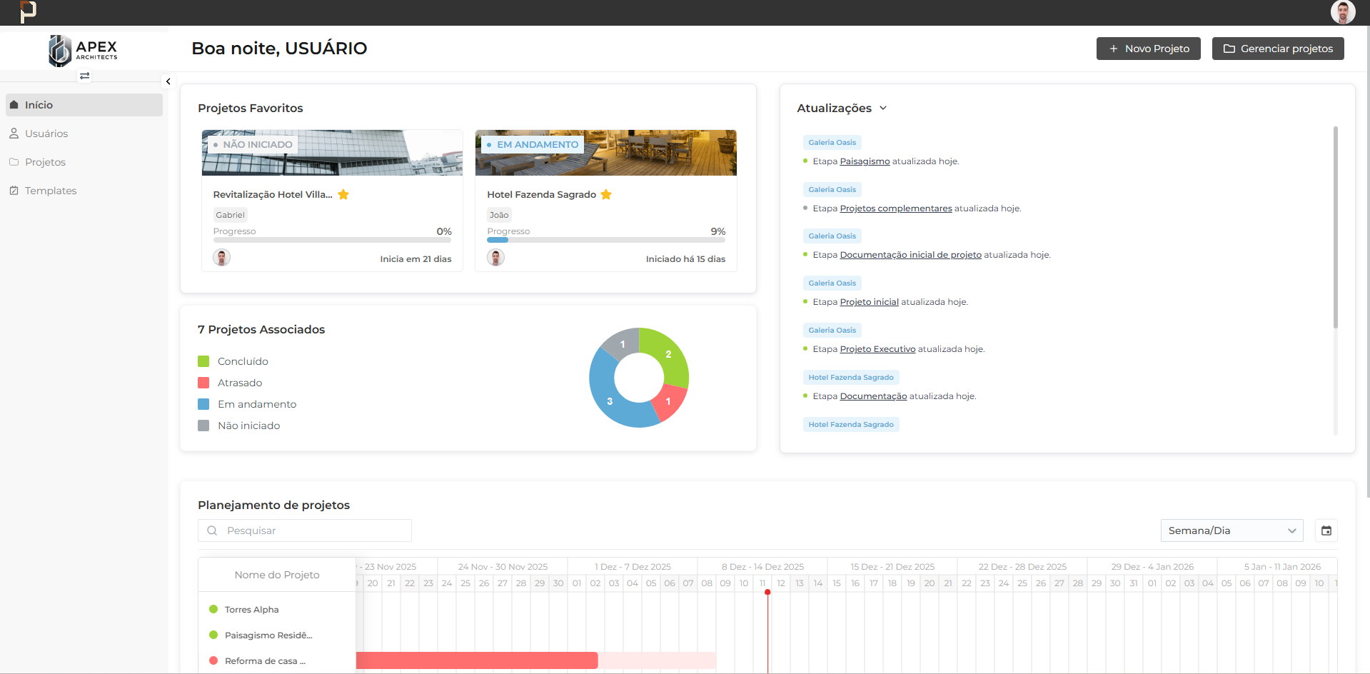 Planeje e acompanhe todos os projetos em um unico lugar, do inicio ao fim, com clareza e praticidade.